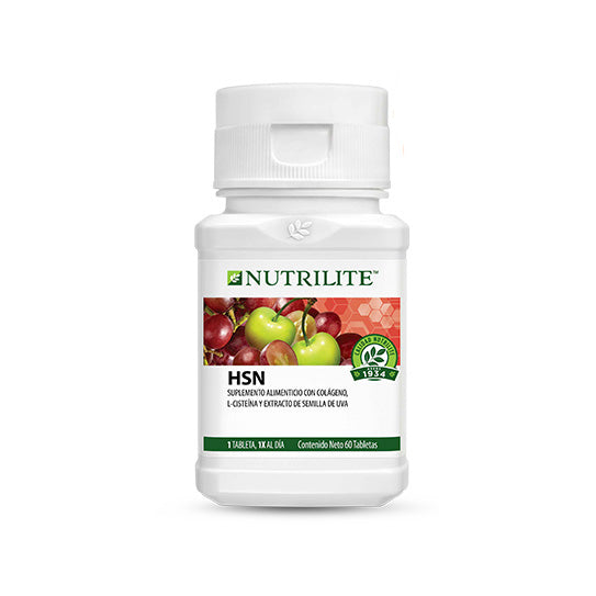 - Con el paso del tiempo tu cuerpo disminuye la producción natural de los aminoácidos y proteínas que conforman tu cabello, piel y uñas. Incrementa la ingesta de colágeno, l-cisteína con Nutrilite HSN.