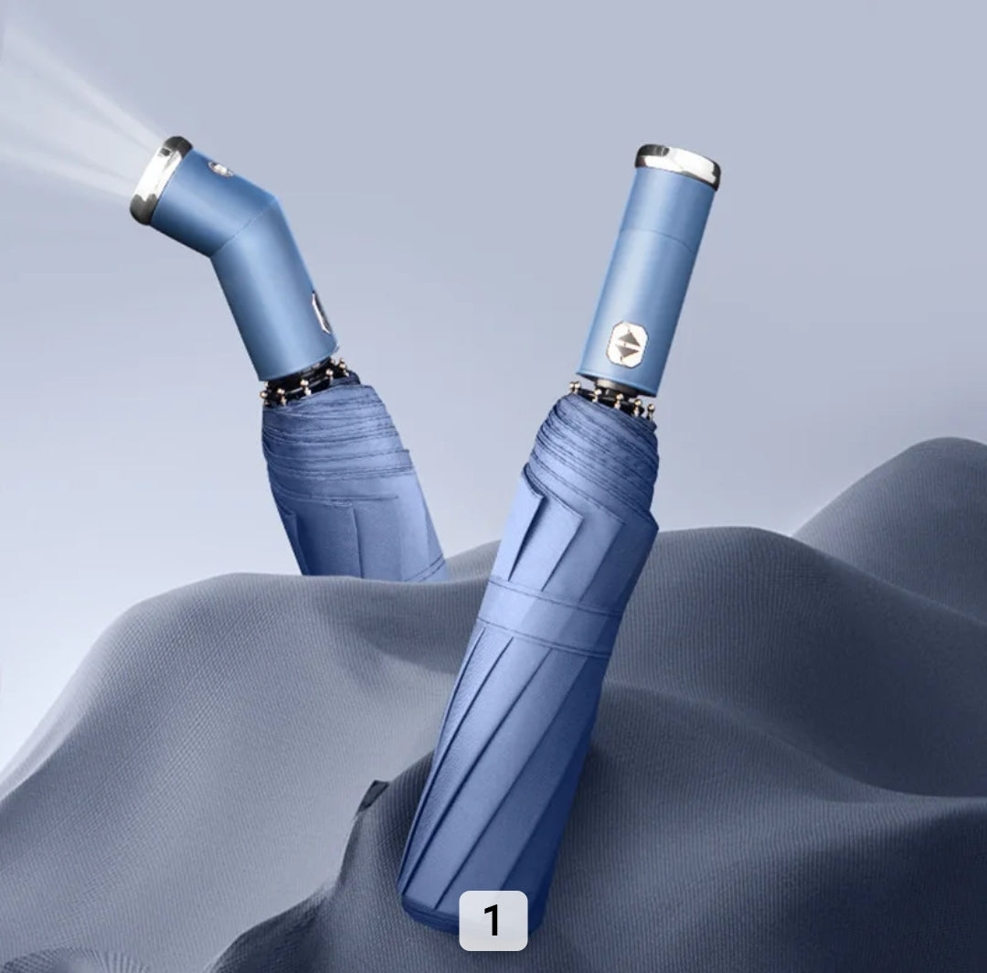 Este paraguas en color celeste DG02 es perfecto para los días lluviosos, ya que cuenta con una linterna incorporada que te permite ver claramente en la oscuridad mientras te proteges de la lluvia. Con nuestra linterna de alta calidad, ya no tendrás que preocuparte por caminar a oscuras bajo la lluvia.