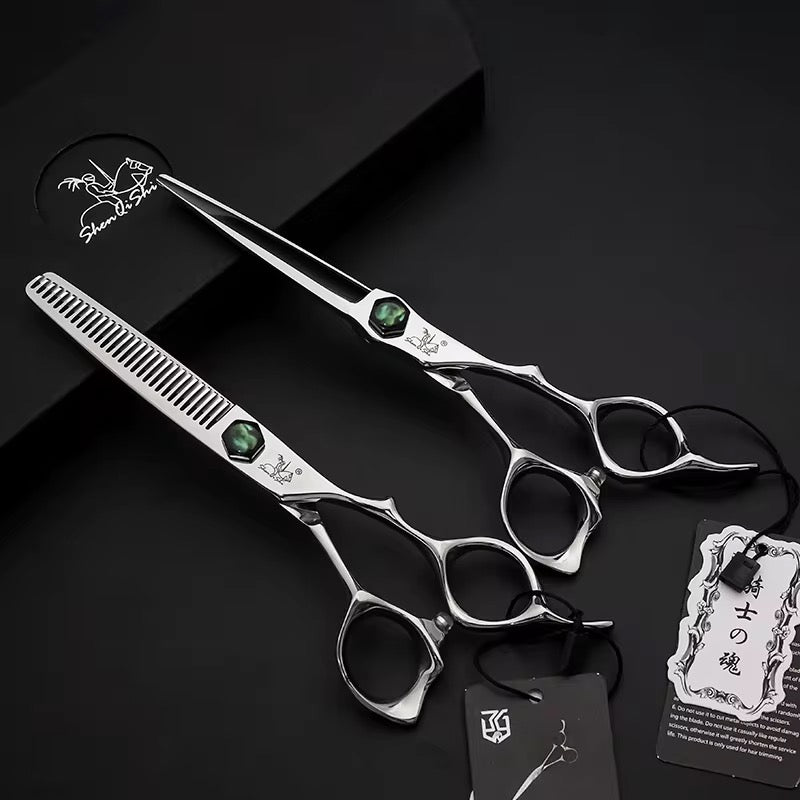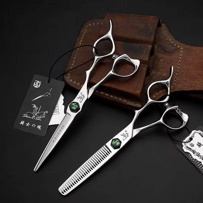 Tijeras rectas/adelgazantes/texturizantes, tamaños (4,0 "/7,0"), puntas de cuchilla (afiladas/romas), mangos ergonómicos.