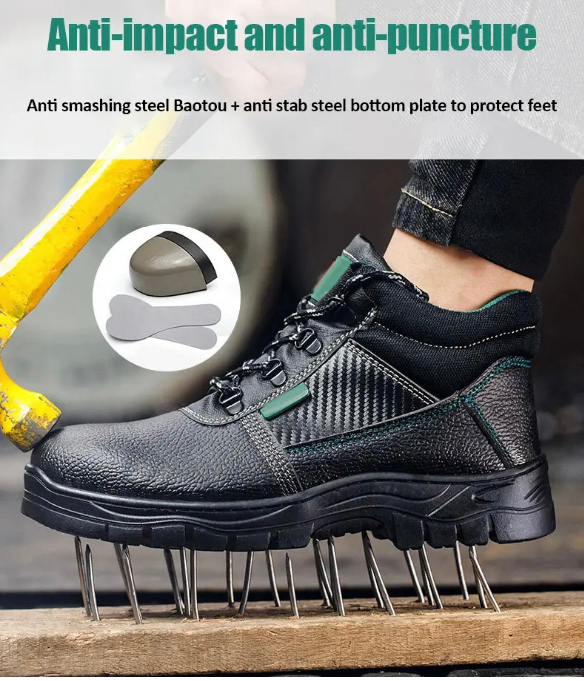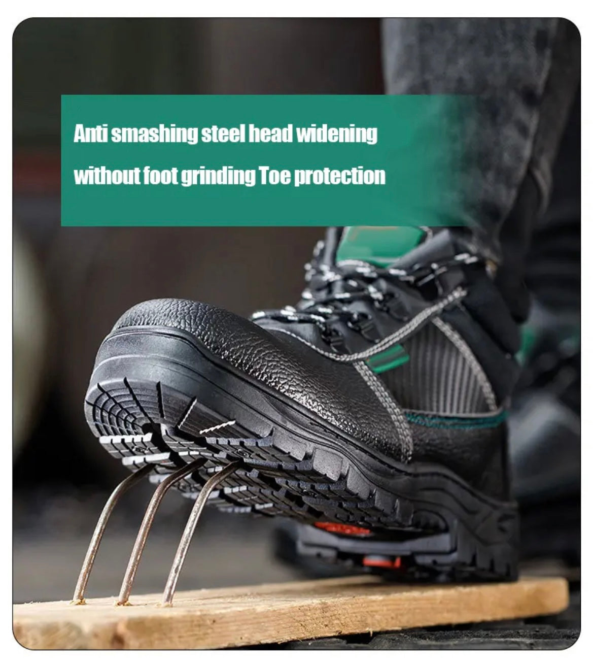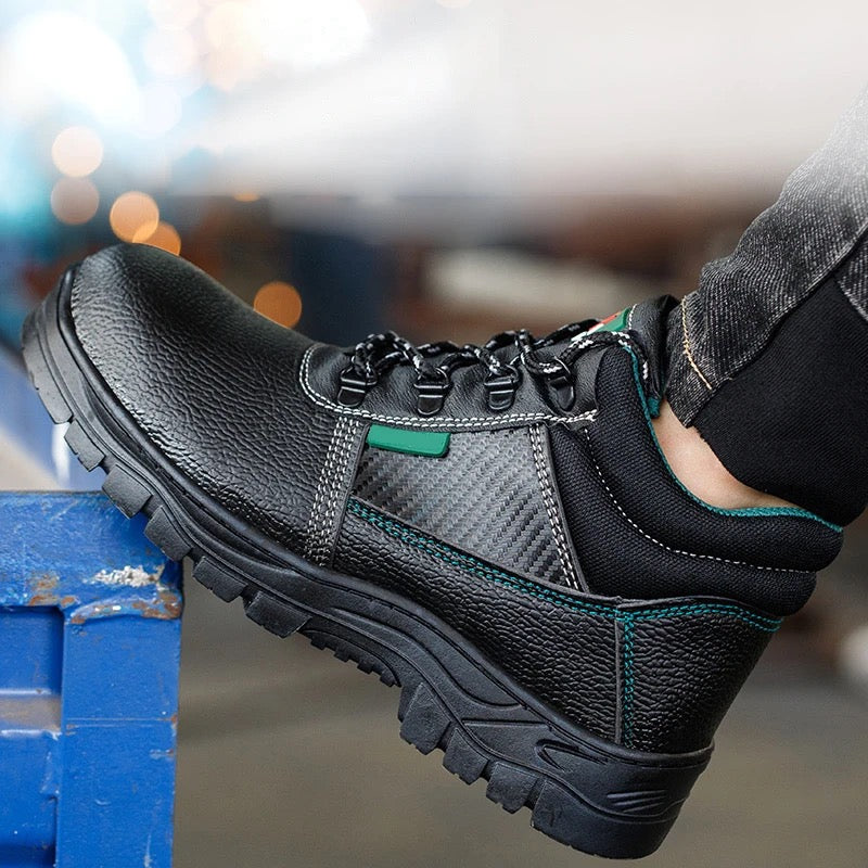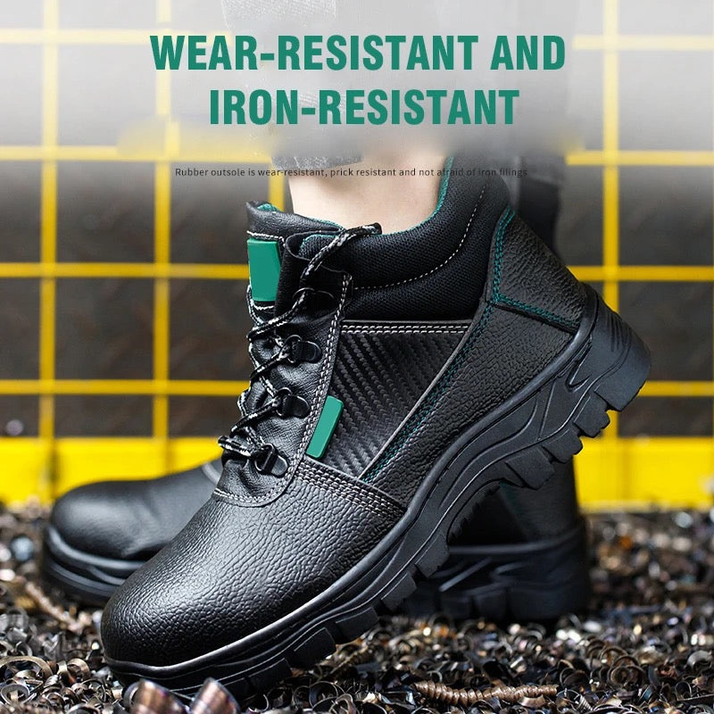 Puntera de hierro/acero, entresuela de hierro/acero, cuero de PU/vaca, suela de goma